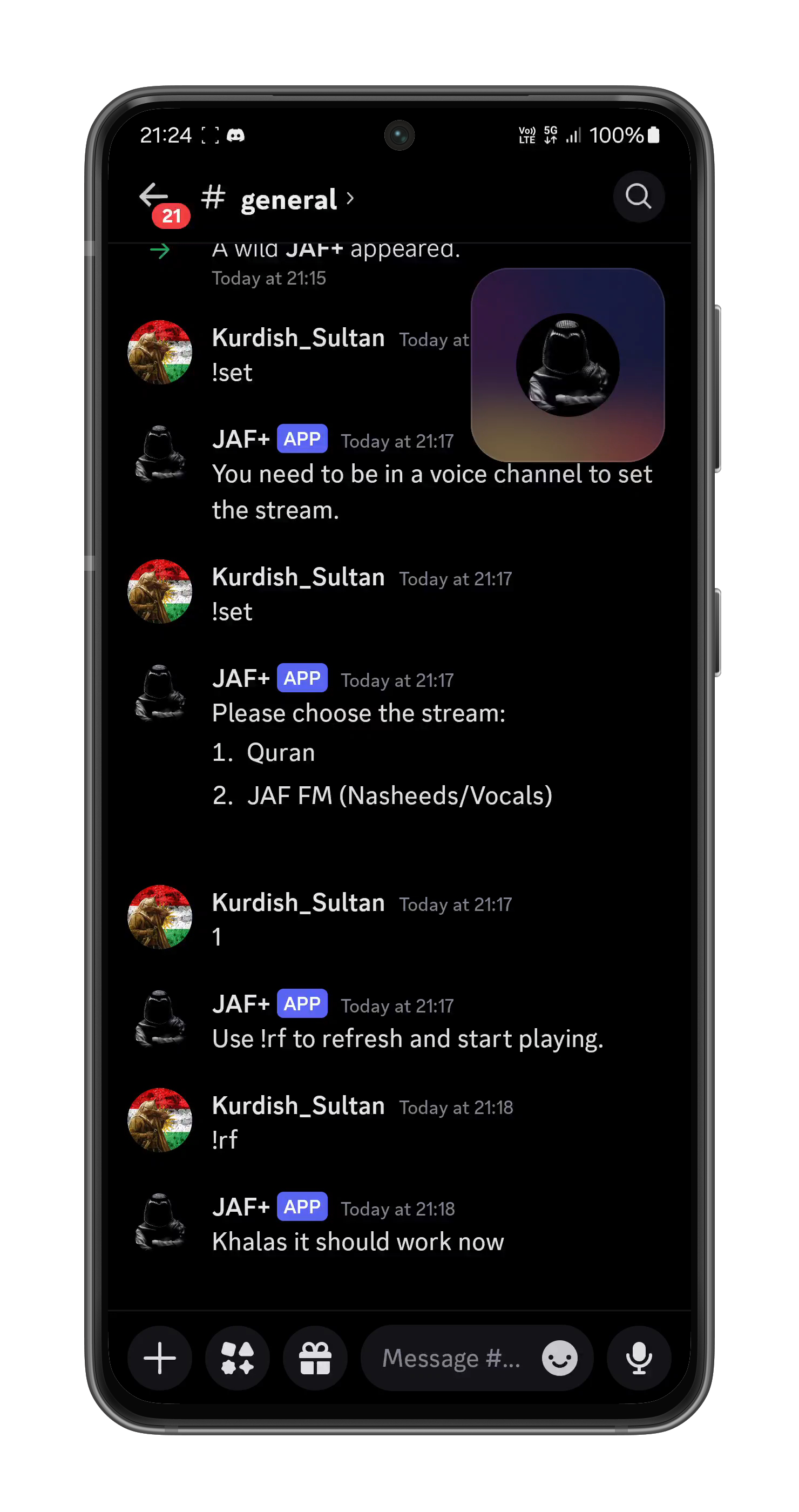 Our commonly used discord bot service that streams Quran or Nasheed's 24/7 without the need of user interaction .